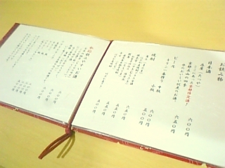 メニューブックは可愛く千鳥がら、手作りのドリンクメニューです。